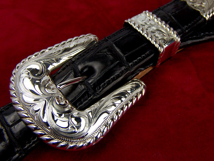 Fully Hand Engraved Sterling Silver Buckle Set with Classic Embossed Rope Style