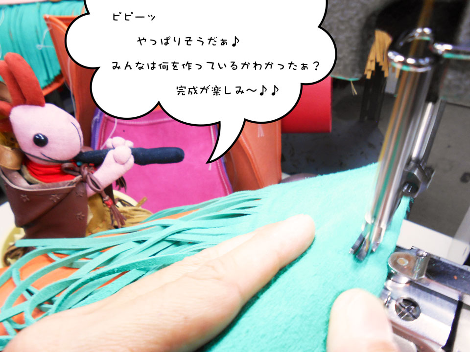 いつもモカシンで使用される柔らかでカラフルな革材料での作業ですが・・・
