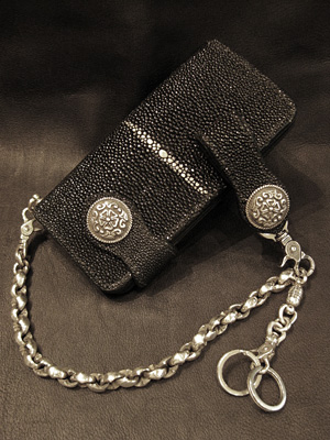 ワレットホルダーを装着する事により、大切なあなたのワレットをポケットの中の湿気や型崩れから守ると共に何よりライディング時のポケットからのずり落ち防止の役割を果たすというバイカーにとっては見た目だけではない安全性をも兼ね備えた優れモノ。