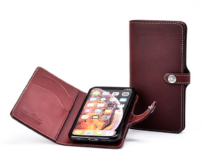 オールレザー構造ならではの質感が人気のブック型iPhoneカバー「Smartphone Book(スマートフォンブック)」にiPhoneの最新機種にも対応する "SPLAT"がNEWリリース!! 近年、端末のサイズが多種多様化し、カメラ位置もその都度変更する傾向にあることから、これまでのスマートフォンブックでは機種ごとに開けていた背面のカメラホールをなくし、スライド式パーツを搭載することで、様々な機種に対応するモデルへと生まれ変わりました。 TPU素材の専用ケースを装着した端末を粘着テープ付きのスライド式パーツへ貼り付けて上方向へスライドさせることができるため、レンズがスマートフォンブック本体に干渉せず写真撮影を行うことができます。これまでのスマートフォンブックのシリーズと同様に、本体左側のカードポケットは、本体を開いて使用する際、カードの銘柄などパーソナルな情報が周囲から読み取りにくいよう配慮され、脱落防止も含めたポケットの深さが、セキュリティー面を十分考慮した設計になっています。 また、ムービーなどをご覧になる際は、端末をスマートフォンブック本体から斜めに立ち上げる事でスタンド形状でのご使用が可能なため、その際にわずらわしいと思われる本体フラップは、フラップの剣先に強度を持たせている事で、フラップの付け根にある小さなポケットに収納できるなど、実用的な機能も十分備えています。日々頻繁に使用するアイテムだからこそ、使うほどに手に馴染むレザー特有の質感とFUNNYならではのこだわりを是非あなたのスマホライフでお楽しみ下さい。