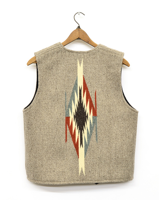 アメリカ・ニューメキシコ州、サンタフェに程近い山間のチマヨ地区では、スペインからの入植者による伝統的な織物の文化が根付いています。 CENTINELA(センチネラ)は、代々織師の家系であるアーヴィン・トルフィリオ氏が、父とともに1980年代ガレージを工房にラグ制作を始めたことが“Centinela Traditional Arts”始まりです。 元々親類であるORTEGA’S(オルテガ)の制作に代々携わってきた彼らの実力は語るまでも無く、糸を天然素材で染める伝統的な手法をリバイバルすることで確固たる独自性を確立しています。 後進への技術と文化の教導に積極的に取り組みチマヨの伝統文化の普及に努める一方で、革新的なデザインや技術、天然素材が生み出す絶妙な色目に挑戦し、今ではチマヨでコレクションピースの作品を制作する唯一の工房であり、最もアーティステックなチマヨ・ウィーバーとして広く認知されています。 本製品は100%ウール素材を一点一点丁寧に手織りされたベストです。糸を天然素材で染め、ナチュラルで繊細な色彩を多用するセンチネラのベストは チマヨの歴史の結晶であり、変わらぬ本物の良さを実感していただけるアイテムです。